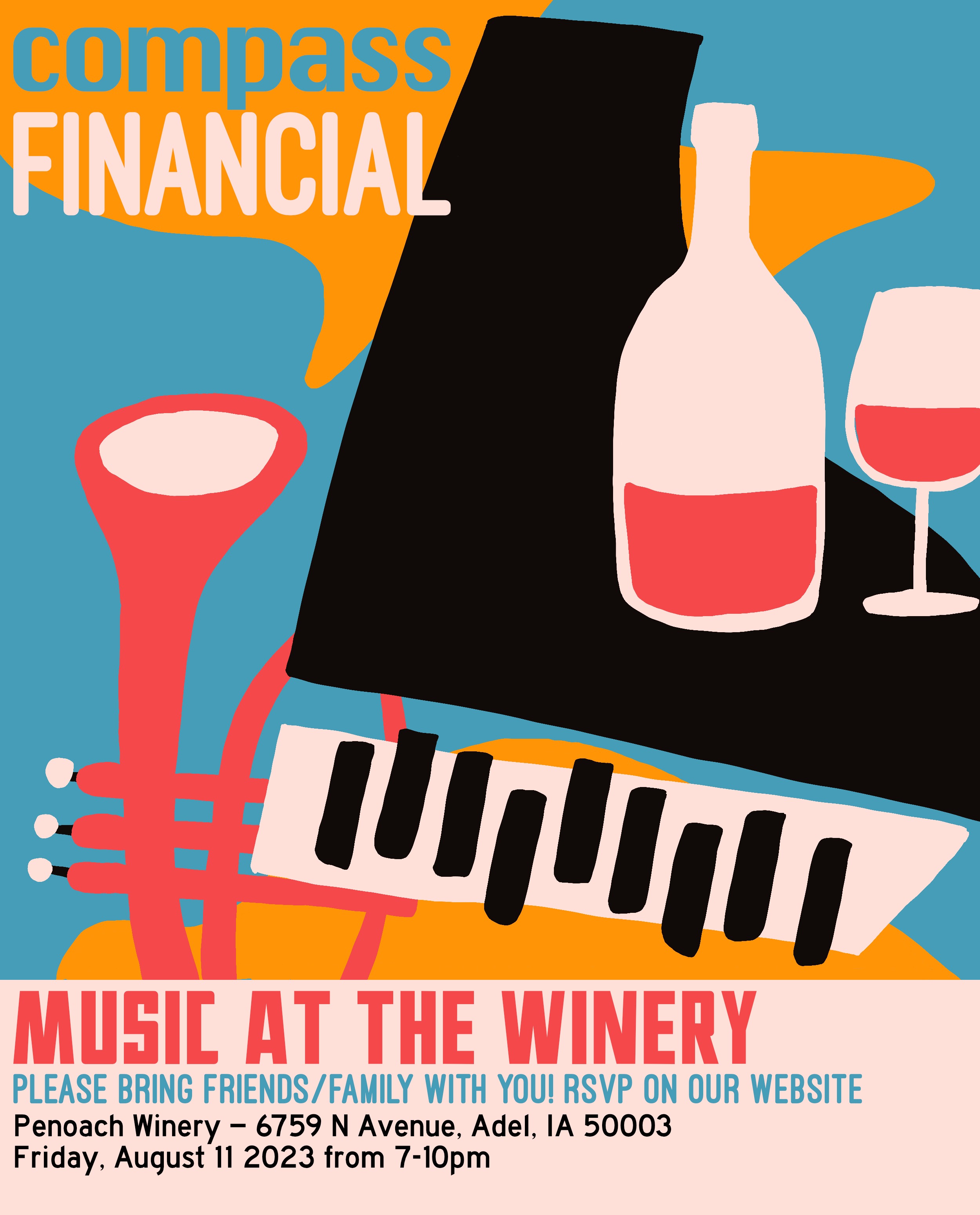 Please join Compass Financial Services at Penoach Winery on August 11th from 7-10 pm for wine, beer, live music, and fun! Friends and family are welcome to join as well. We will have snacks available for you and your guests, so please RSVP for however many plan to attend so we can have enough for everyone!