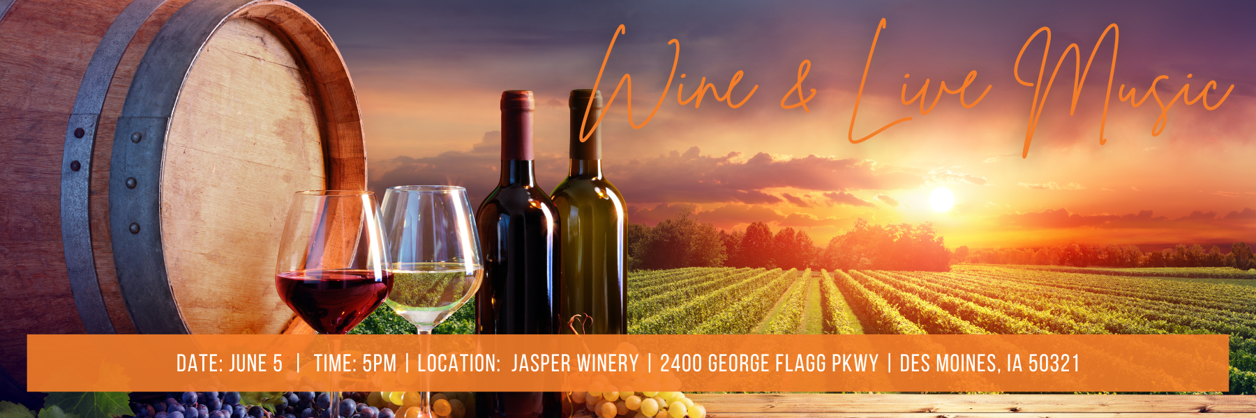 Join the Compass team on June 5th for a fun-filled night at Jasper Winery! Having been around since 2000, Jasper Winery is a modern winery that produces all of its wine right here in Des Moines.