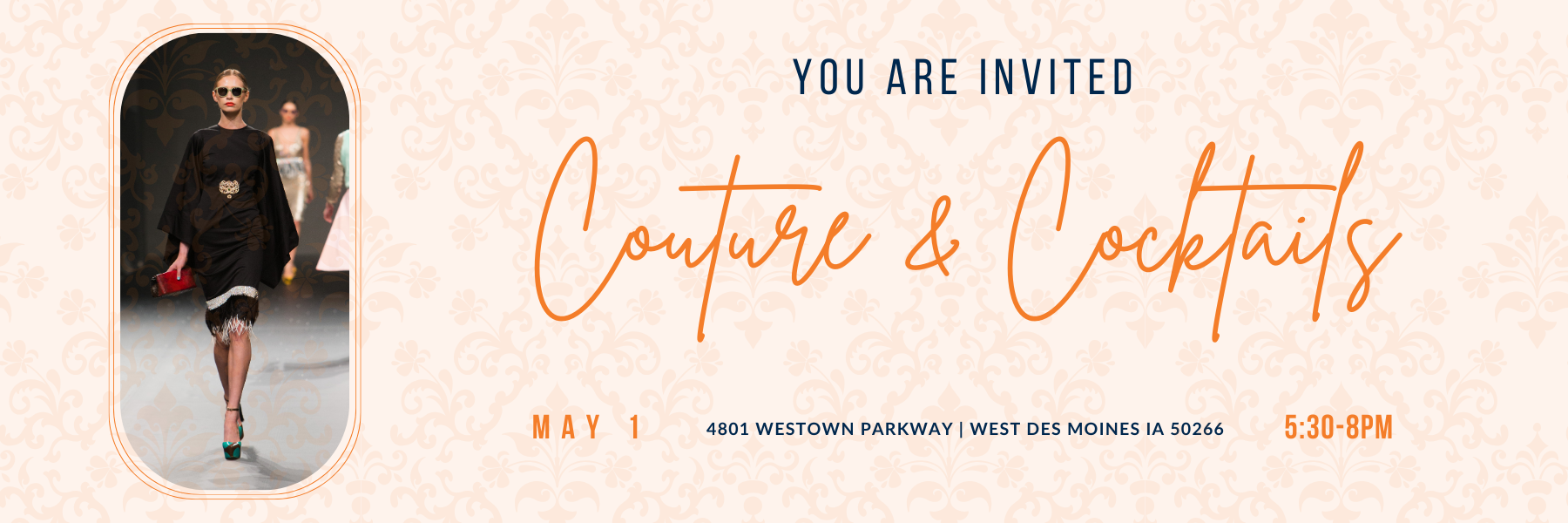 Ladies, we are excited to invite you to another Couture & Cocktails - Fashion Event, Thursday, May 1st - Cocktails and appetizers at 5:30 pm and Showtime at 6 pm. Join us at Compass Financial Services for fashion, food and fun! 🌸👗